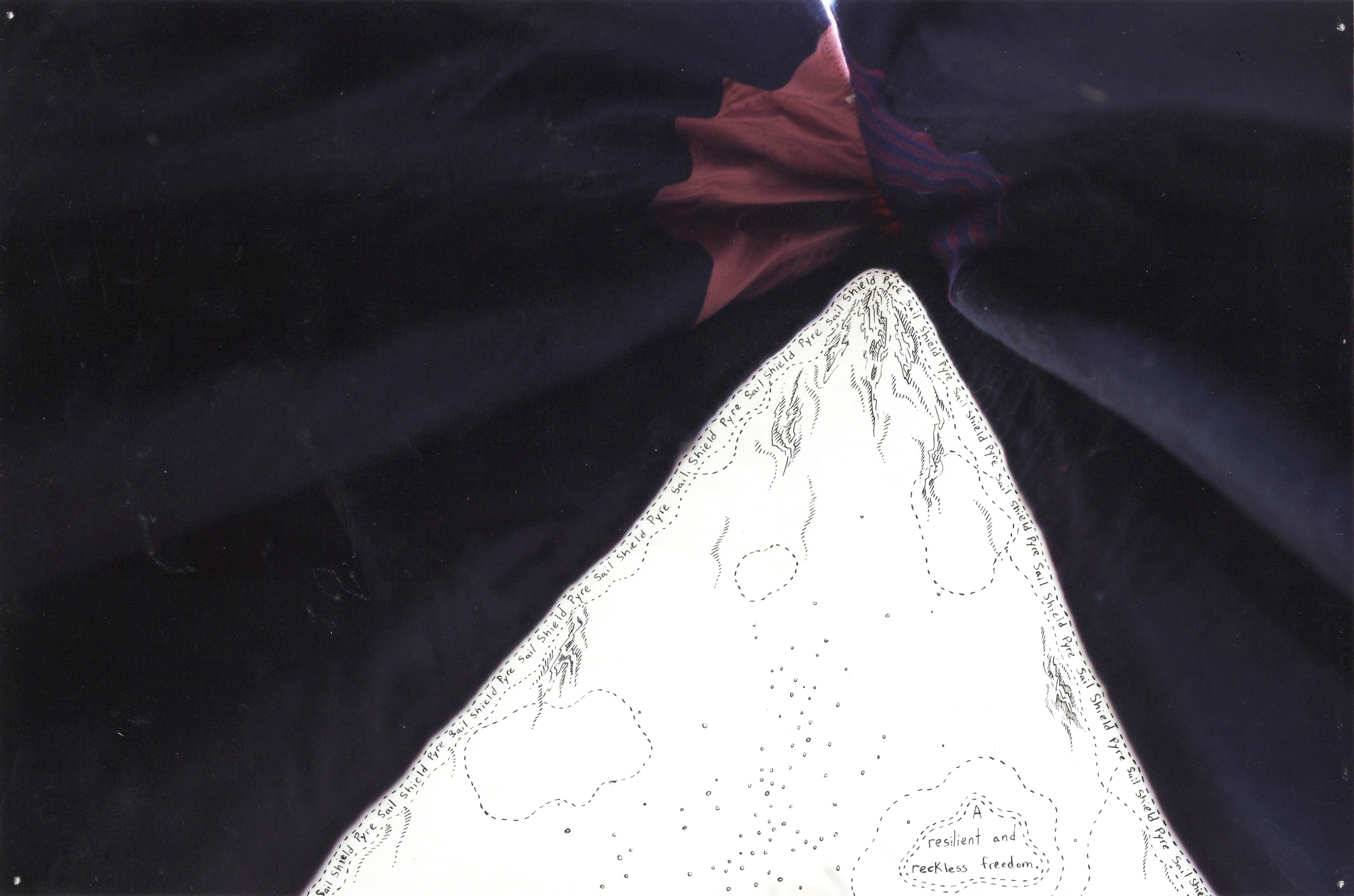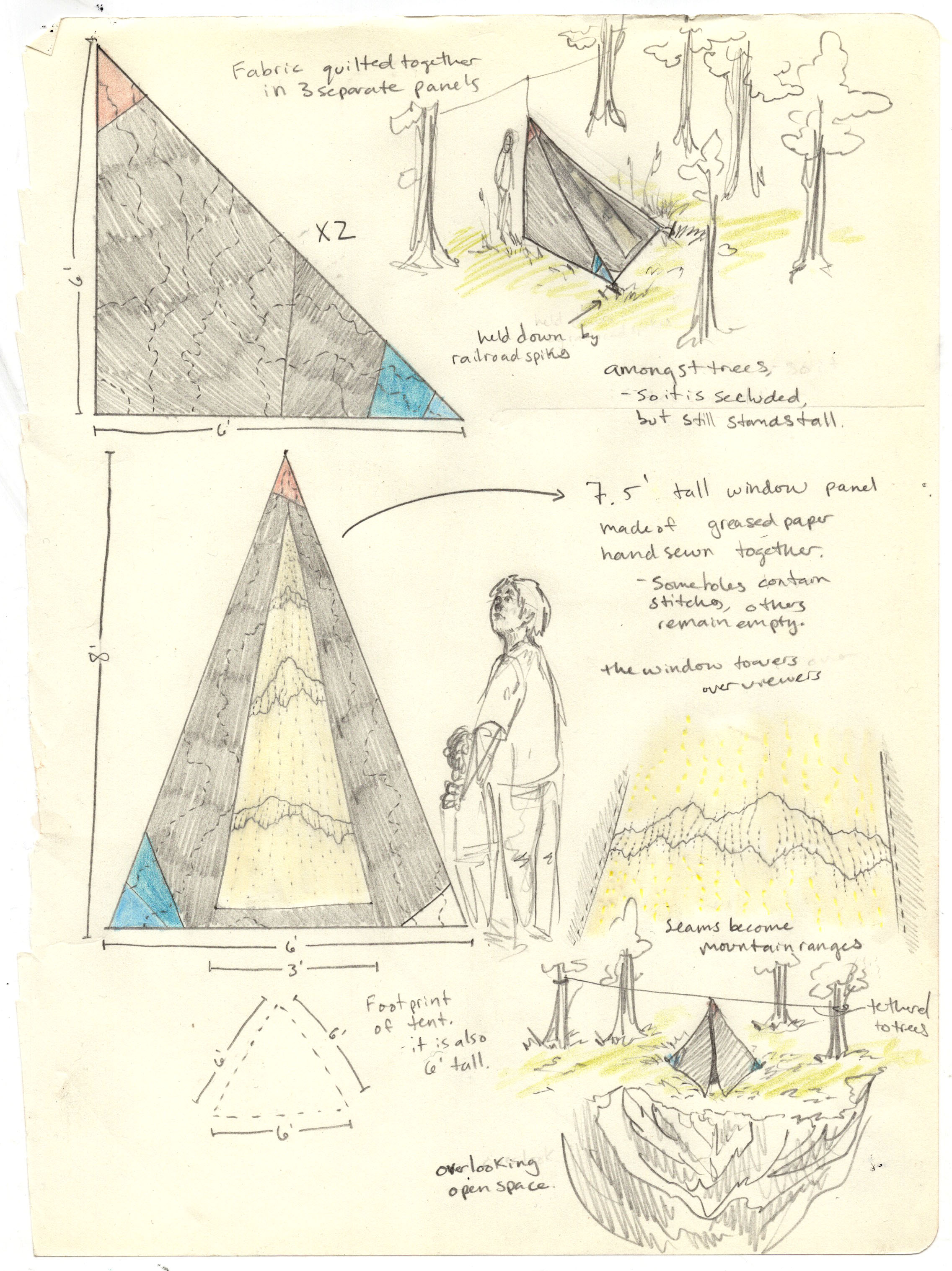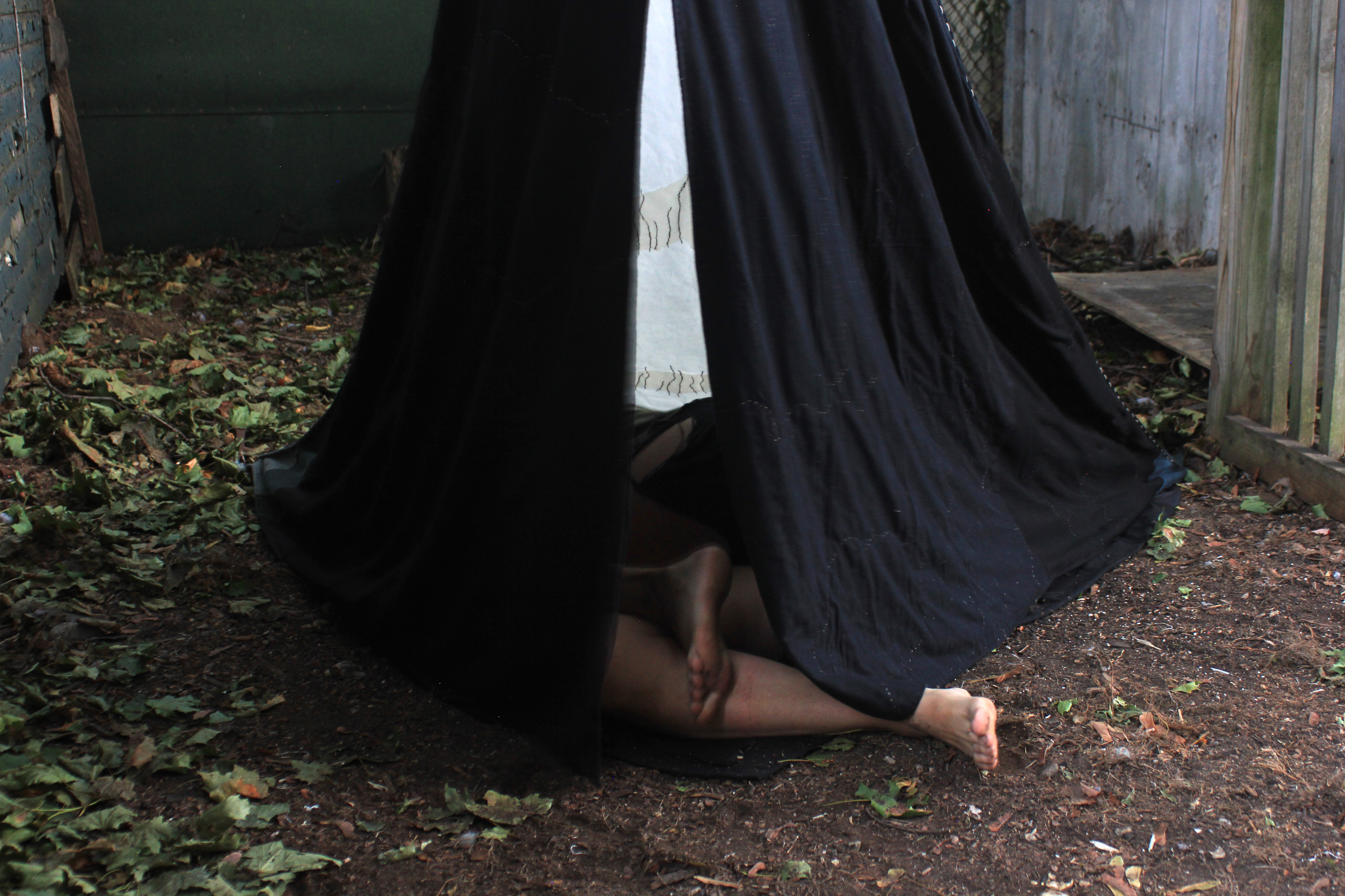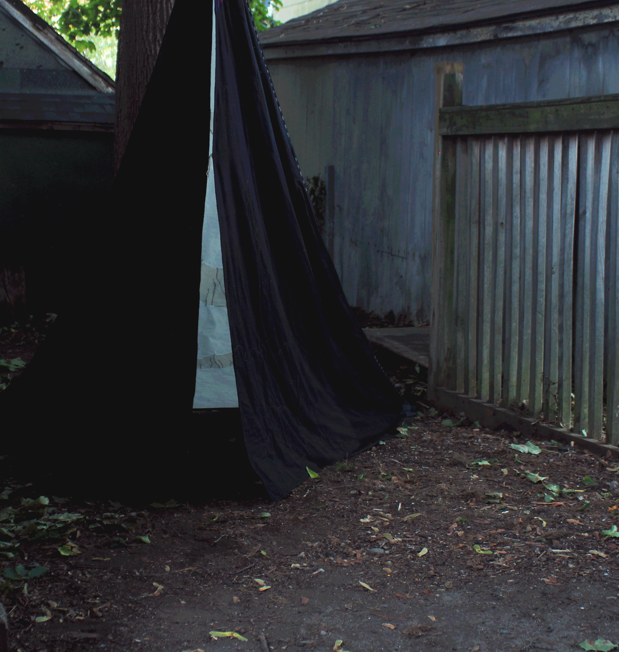 Tent was originally installed in a narrow alley between structures. This is a refuge for the in between.